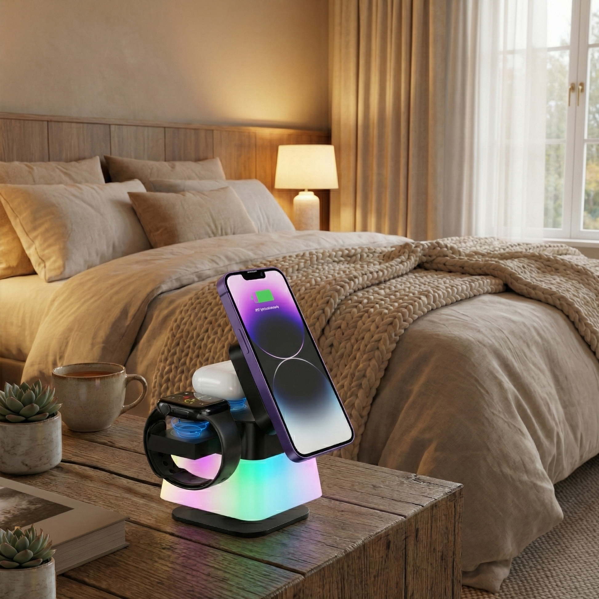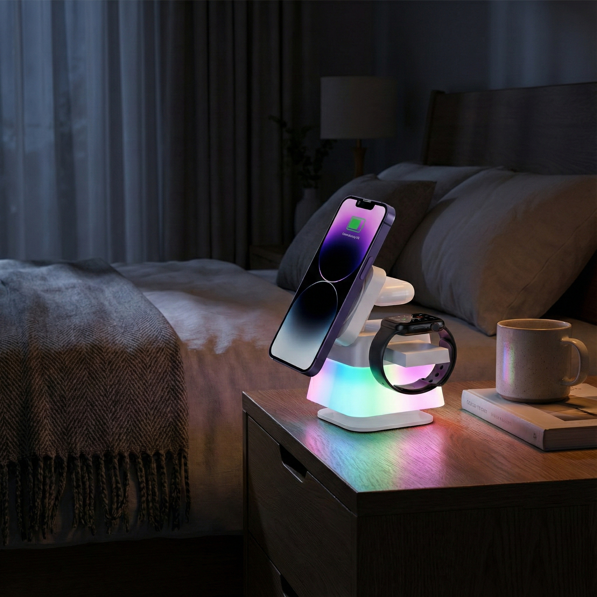 LumiDock 4-in-1: Magnetic Fast Charging Station with Ambient RGB Glow