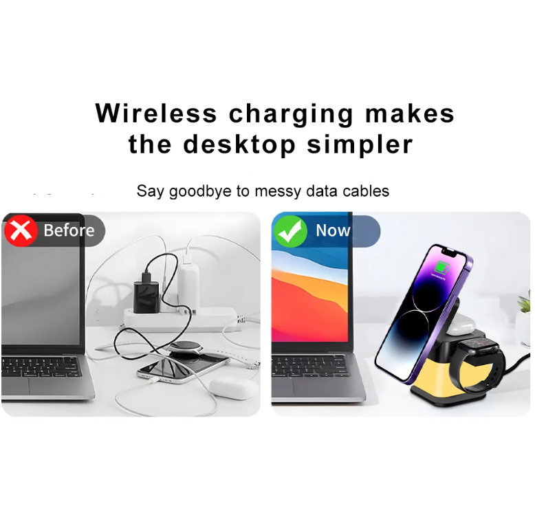 Declutter Your Desk: Power up your iPhone, Apple Watch, and AirPods simultaneously with one sleek, cable-free stand.